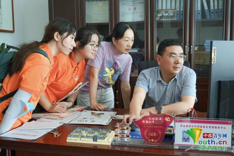 图为实践团成员与当地文化局刘主任进行访谈。中国青年网通讯员王振宏 摄