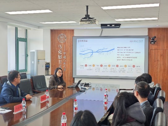 在北京大学马克思主义学院,院长仰海峰、党委副书记李石生、副院长宋朝龙等向我院介绍了北大马院深厚办学底蕴和鲜明办学特色,尤其是着重分享了学科建设、人才培养、教学管理、科研创新、学生培养、国际交流与合作等方面的特色经验。在中国人民大学马克思主义学院,院长冯秀军、副院长宋友文向我院介绍了马克思主义理论学科特色方向凝练、思政课教学改革、师资队伍建设和人才培养等方面的经验。