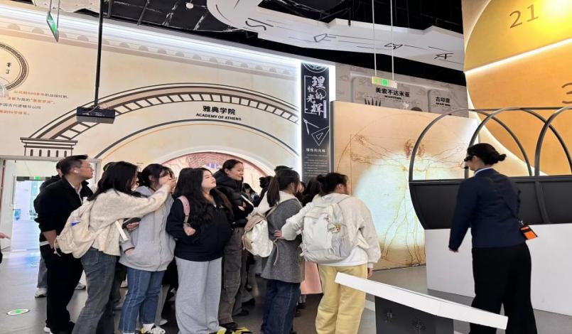 在讲解员引导下,全体预备党员依次参观了“创引擎”“创智慧”“创未来”三大主题展区。在习近平总书记考察安徽的创新馆展陈区域,同学们认真重温重要讲话指示精神,深刻感悟科技自立自强的战略意义,并结合专业背景进行现场研讨,直观感受科技创新对推动高质量发展、塑造新质生产力的重要作用。