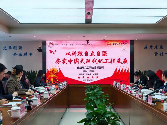 此次微党课是合肥工业大学深化校企合作、推进协同育人的重要举措。活动期间,校企双方还围绕共建大学生就业实习基地、党支部联建、科研攻关合作等议题展开交流,达成系列合作共识。下一步,学校将持续发挥学科与人才优势,与中建四局六公司携手搭建“理论+实践”双向赋能平台,以党建引领科技创新,推动科研成果在工程一线落地生根,为培养更多服务国家战略的骨干人才、筑牢中国式现代化工程底座凝聚校企合力。