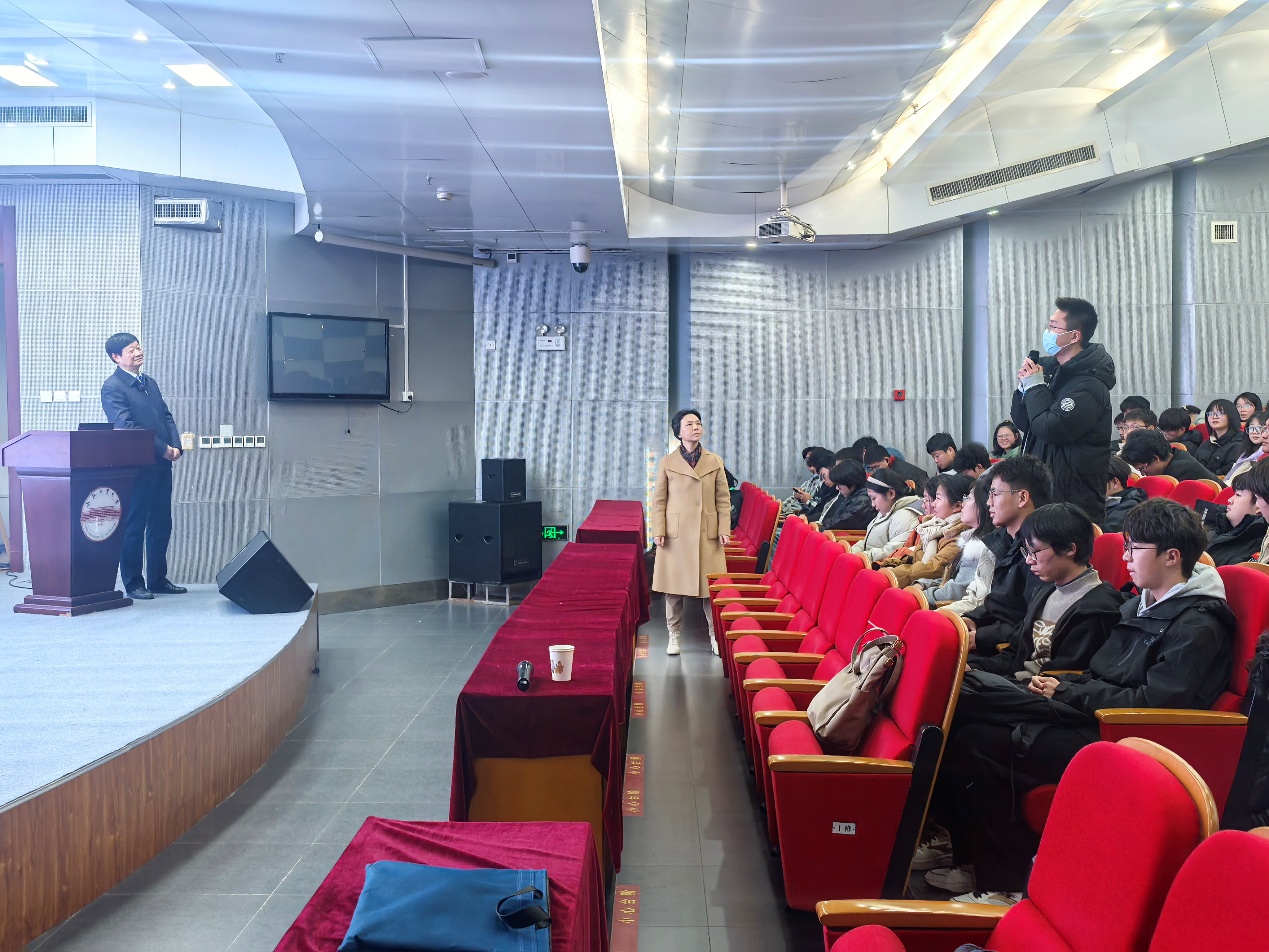 朱恒银教授的报告朴实动人,现场师生深受触动。互动环节,同学们纷纷对朱恒银教授忘我奉献、勇于创新的大国工匠精神表示敬佩,并就自身专业以及朱教授抢救上海地铁四号线的经历细节发起追问,朱恒银教授一一作答并指出,大学阶段学好专业知识,打下坚实基础,才能大有作为!